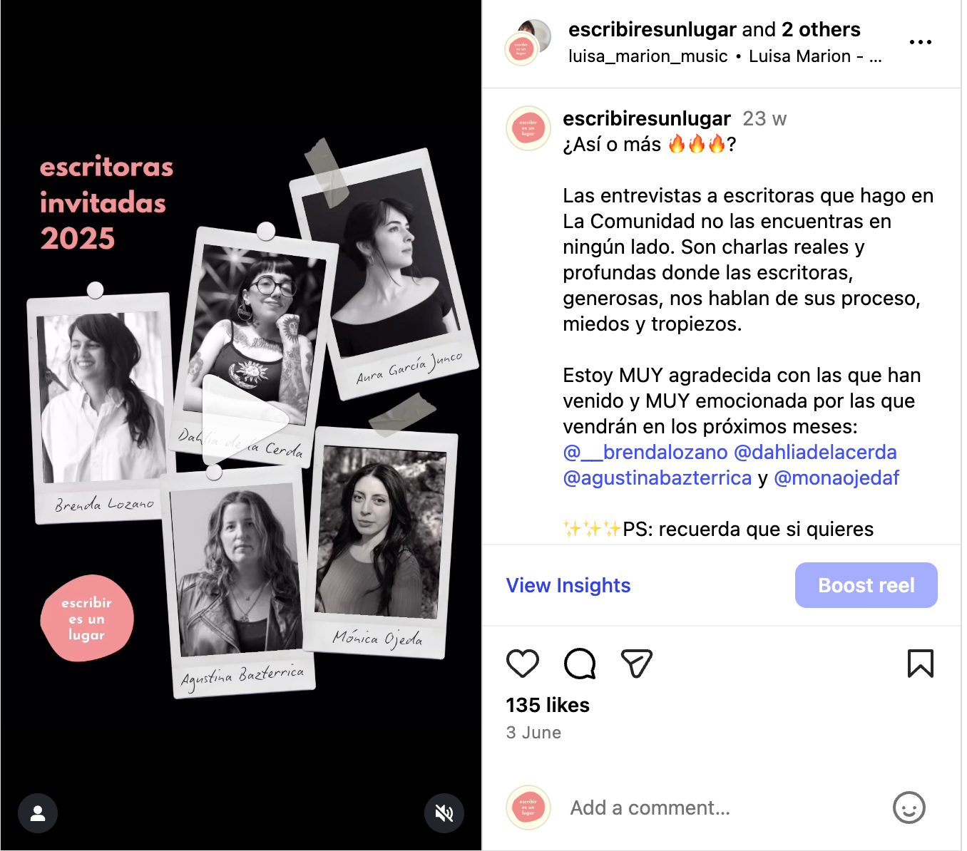 Consiste en tener acceso a un grupo de pares y una guía experta para darle a tu yo-escritora un espacio de cuidado y de escucha.